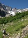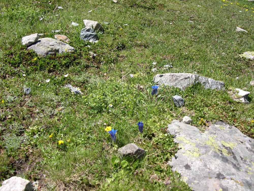 Dans la descente tranquille, on a le temps de regarder les fleurs (gentianes de Kock (Gentiana kochiana))