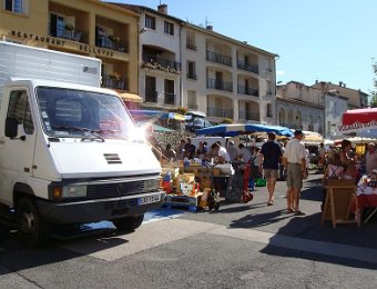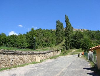 A gauche, l'église Saintes Juste et Ruffine. Eglise primitive de 982, puis reconstruite en 1245, et à nouveau vers 1650. Au fond le fort Lagarde, partiellement…
