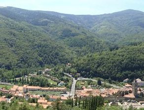 Le village et son enceinte fortifiée par Vauban, au-dessus du Tech