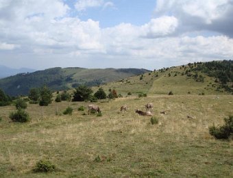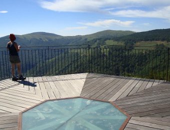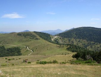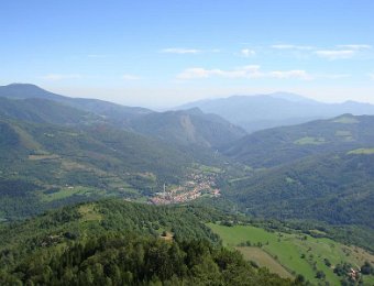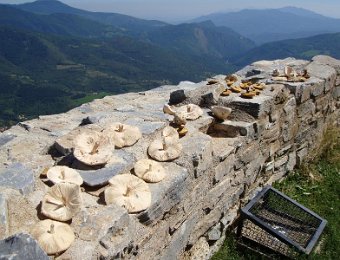 Ici, nous sommes en Espagne. Les piquets de la frontière. Là-bas, la tour du Mir. Here, we are in Spain. Stakes of the "frontier". Over there, the tower of Mir.