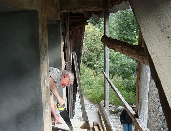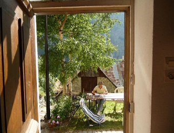 À l'entrée du village le potager est toujours aussi beauAllons chez les RivronPersonne ?Là, le potager fait pitiéLa chatte intriguéeAh, une nouvelle porte !Et un nouveau carrelageLe plafond a été rehausséLe maître des lieux : en retraite maintenant, mais quand même en plein travail. 02_Le_Flash_de_Payssa