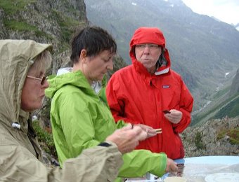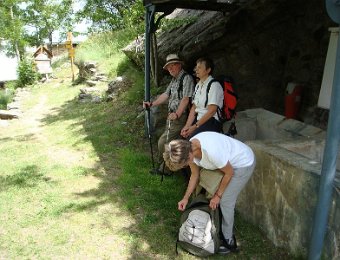 Papotages à Saint-Christophe, avant de monter à la ViergeAh, ça construit, ici !On retrouve le chemin classique ...... mais il y a de nouveaux panneaux indicateursNous allons vers la table d'orientationSurprise ! Blandine est montée par un autre chjeminDommage qu'il pleuve, maintenantJean-Paul, tout mouillé, préfère carrément changer de maillotMais rien n'arrête les valeureux montagnards ... 01_La_Bernardiere03_Temples-Ecrins