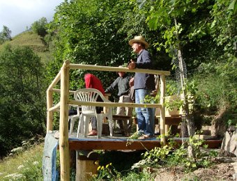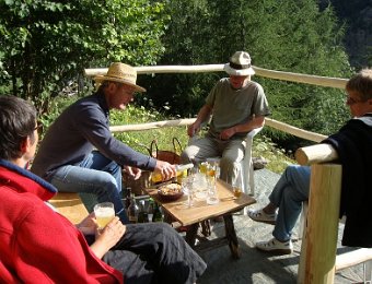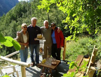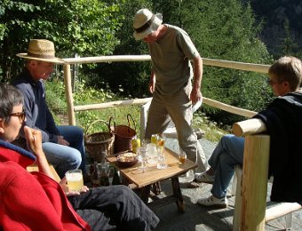Quels sont les changements depuis l'année dernière ?Extérieurement, pas grand-chose, ...... à part un gros chat maladroit ...... mais intérieurement, cela devient luxueux !À noter entre autres la nouvelle porte au fond, mise en place par Jean-Paul.... où l'on a le soleil plus longtemps ...... et où l'on peut prendre tranquillement l'apéro.Déballons tout ça ...... mais n'oublions pas le photo de groupe ...... en prenant la pose. Comme ça ? ... InaugurationLe_Bec_de_Canard