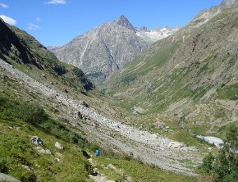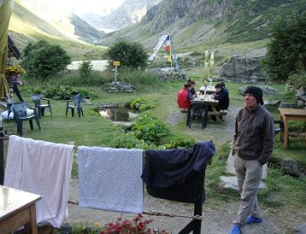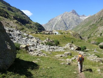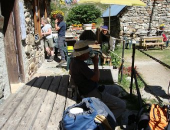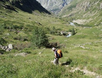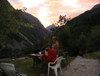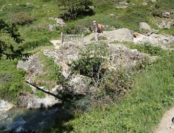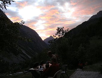 Départ tranquille vers 16h, pour le refuge de la LaveyLa classique photo en passant sur le Vénéon ...Et le tout aussi classique passage par Le Raja...... pour continuer vers le refuge ...Marche d'approche facile ...... avec quelques jolies digitales en bord de chemin ...... autre petit pont traditionnel, sur le Gabouléou ...La cascade est toujours là ...... on arrive bientôt, au fond, l'Aiguille d'Olan ...... et voici le refuge de la Lavey (1785 m), déjà à l'ombre ... La_Bernardiere