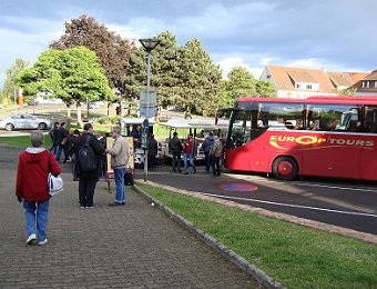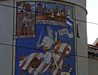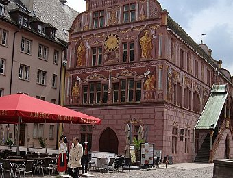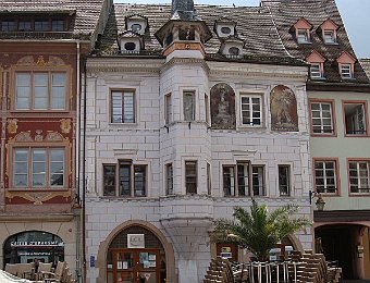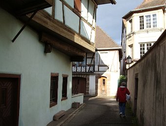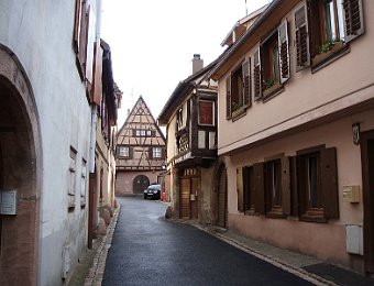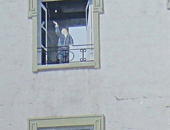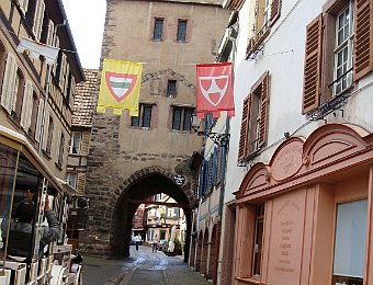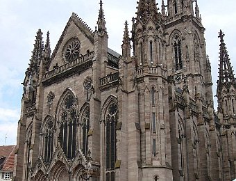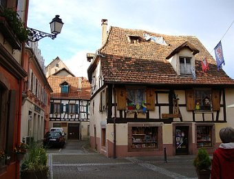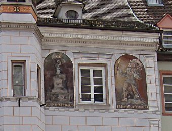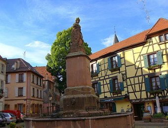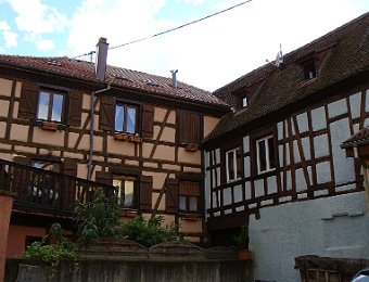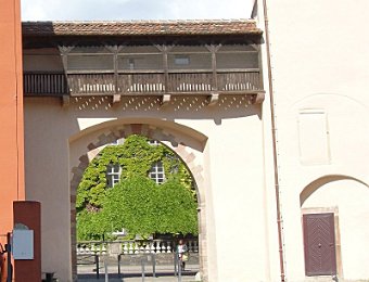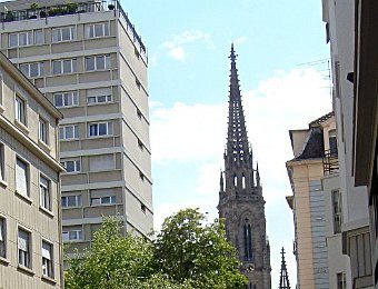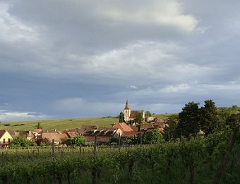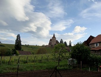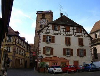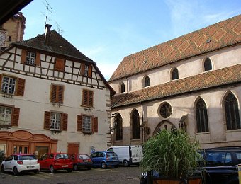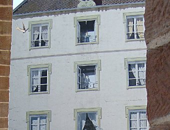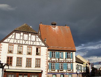 De la fenêtre de la chambre, la cigogne touristique sur l'église Saint Georges.