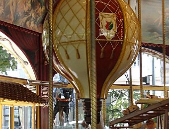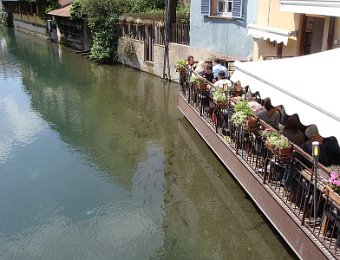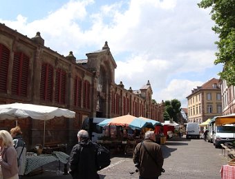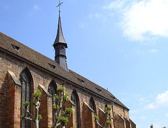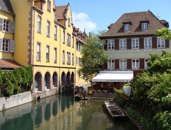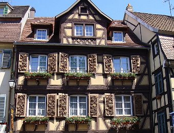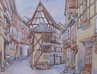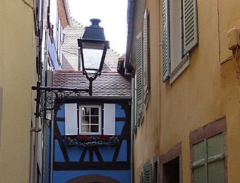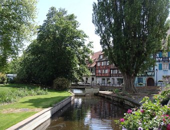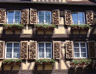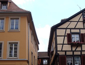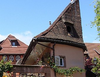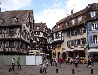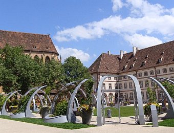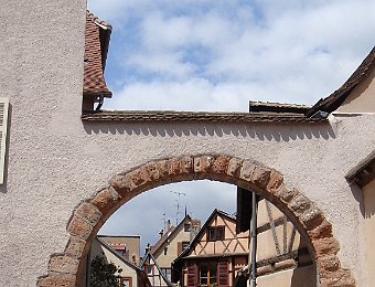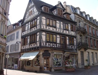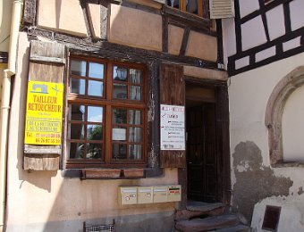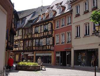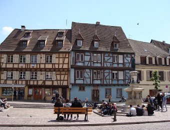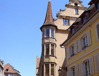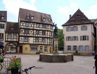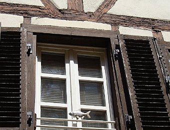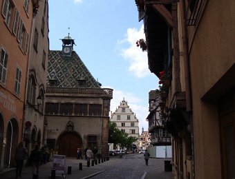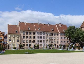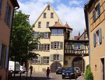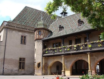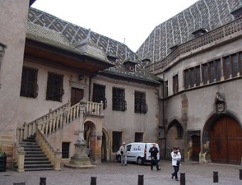 Et bien sûr le musée ...Dans la rue des Têtes, près du quai de la Sinn, le Salon de thé du musée ...Place des Six-Montagnes-Noires, avec la statue du prévôt Jean Roesselmann (1262), par Bartholdi.... Unterlinden ("sous les tilleuls"), en restauration. Ancien couvent de dominicaines....et la célèbre Maison des Têtes (1609).... un bref historique.Sur l'oriel double et les montants et meneaux des fenêtres, 106 têtes grimaçantes !Sous le porche ...Une cour intérieure, avec, évidemment, une vigne.Encore des colombages, et un petit oriel. 1_-_Mulhouse__ICSIBO__Ribeauville3_-__Ile_du_Rhin__Breisach