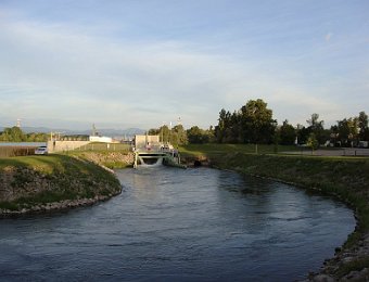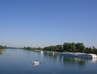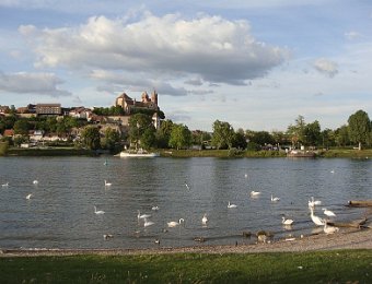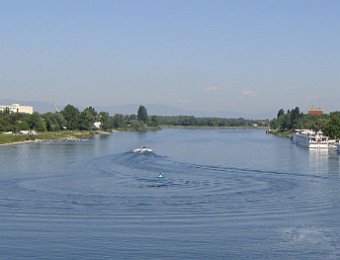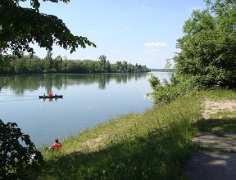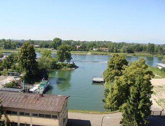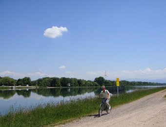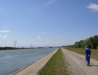 L'entrée du camping ...Très peu de monde sur le camping, en ce mois de mai.Propre et confortable. Un séjour-cuisine, deux chambres, salle de bain, toilettes.... et le mobil-home que nous avons loué.... qui n'effraient nullement les nombreux cygnes ...Vue en aval sur le Rhin ...... tout aussi indifférents aux touristes.En face, en Allemagne, Breisach.... où passent régulièrement des adeptes du ski nautique ...... où viennent pêcher les Allemands d'en face ... 2_-_Colmar4_-_Route_des_vins__Riquewihr