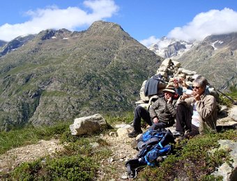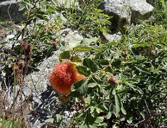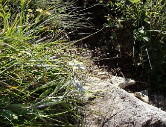 À la descente, nous remarquons mieux les fleurs, La grande astrance (Astrantia major) est toujours fidèle au poste, ...Au fond, les Fétoules, assez enneigées. Encore quelques minutes ...Les petits moulins estivaux sont bien en place et Jean-Paul a sa double protection crânienne.Au moins, il fait grand beau. Au fond, le Soreiller.La petite balade annuelle classique. Et même ici en version raccourcie, en partant du parking des Étages.... pour s'installer, ...... jusqu'à l'arrêt intermédiaire ...Panorama vers le sud. Fétoules, Rouies, au-dessus du rau de la Muande, ...Allez, on remonte un peu, ...... pourtant carrément sur le chemin ! 4_Alpe_du_Pin