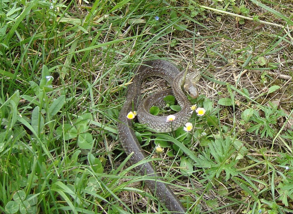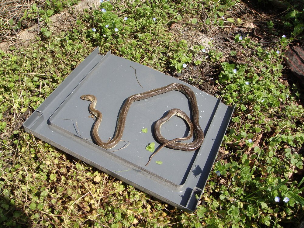 Pas encore concernés par le changement de saison !Plein de têtards ...... et même quelques champignons.Moins sympathique ...... cette grande vipère.En fait retrouvée morte le lendemain.Après la pluie, enfin le beau temps ...... et un magnifique ciel bleu.Bon moment pour planter cette patate oubliée ...... et pour faire abattre cet arbre mort ... Labels
