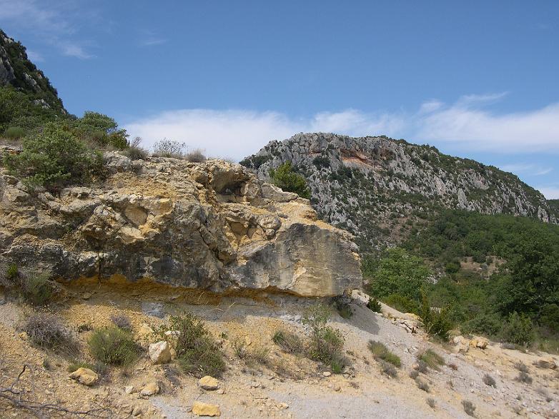 Redescente vers le Verdon. Ocre et gris-bleu des rochers