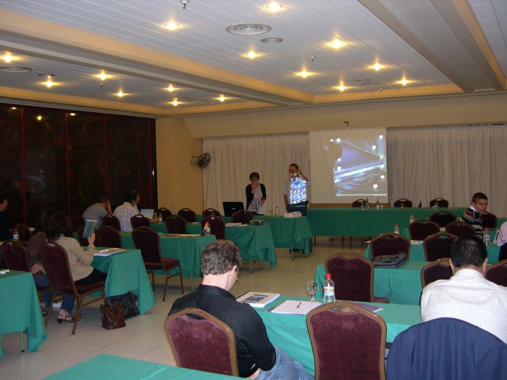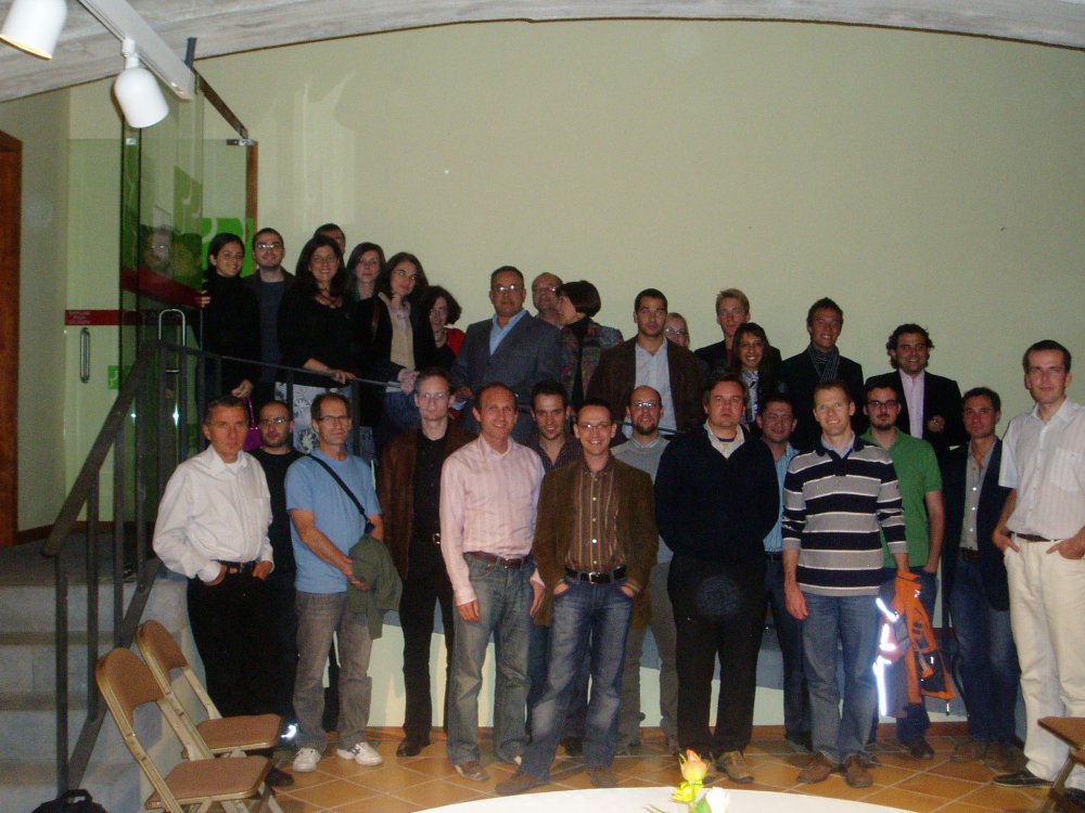 Un roumain, deux français, des espagnols, deux allemands, un anglais, un suédois, un italo/suisse, un tchèque, deux brésiliens (en haut à gauche) etc. Les chinois et indiens prévus n'ont pas pu venir