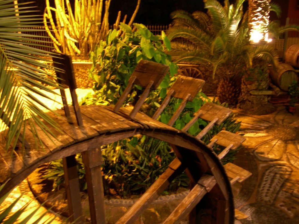 Vieille roue à aubes dans un restaurant ...