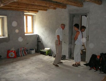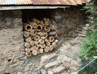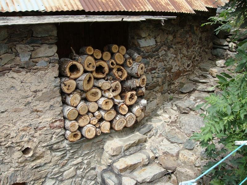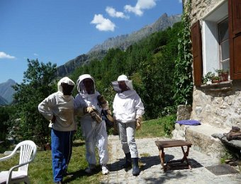 Peu de changements depuis l'année dernièreQuelques ruchettes prêtes à être installéesUne fenêtre de plus dans l'ancienne écurieJean-Paul jardineLe fier trio a visité la ruche : il y a une reine pondeuse, mais la colonie est faibleL'ancienne écurie a été largement transforméeVisite chez Daniel RocheSon jardin en terrasseEn face, réserve de bois de Gérard