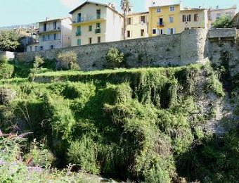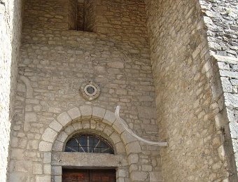 A gauche, l'église Saintes Juste et Ruffine. Eglise primitive de 982, puis reconstruite en 1245, et à nouveau vers 1650. Au fond le fort Lagarde, partiellement…