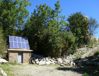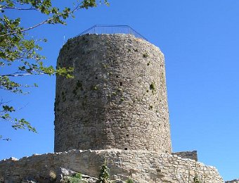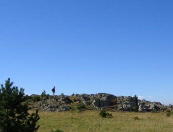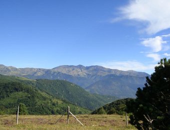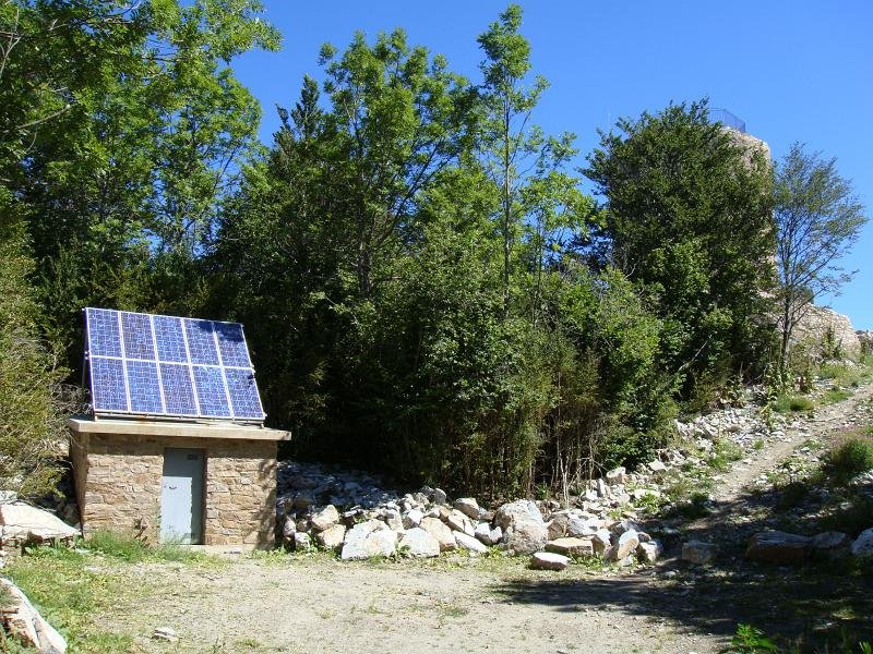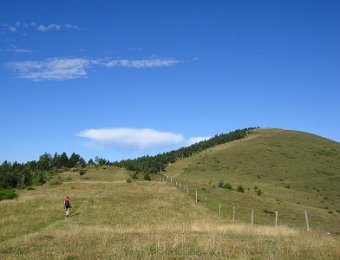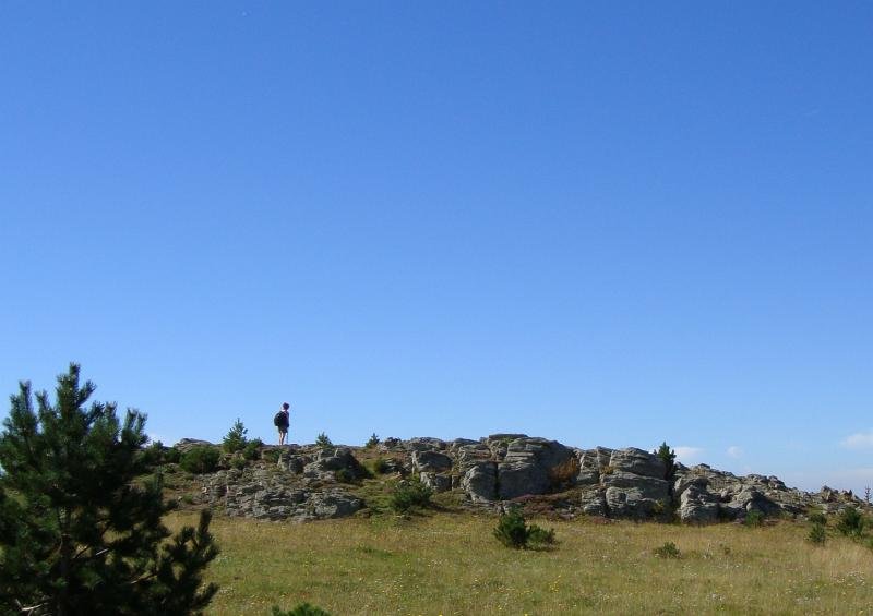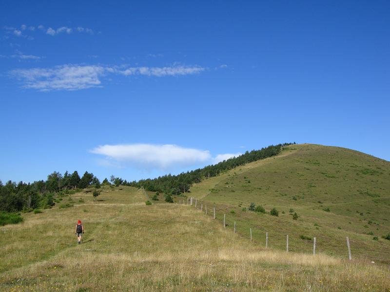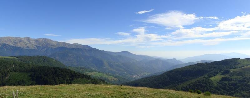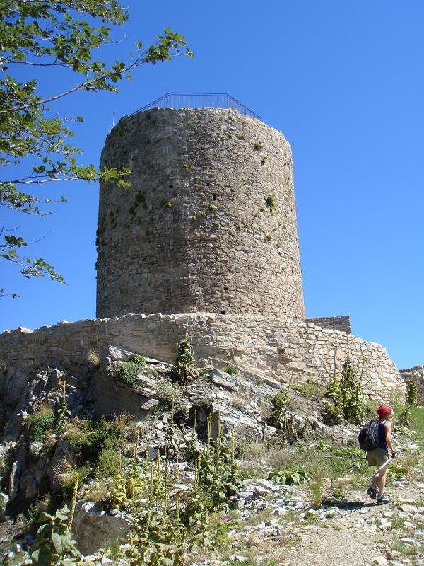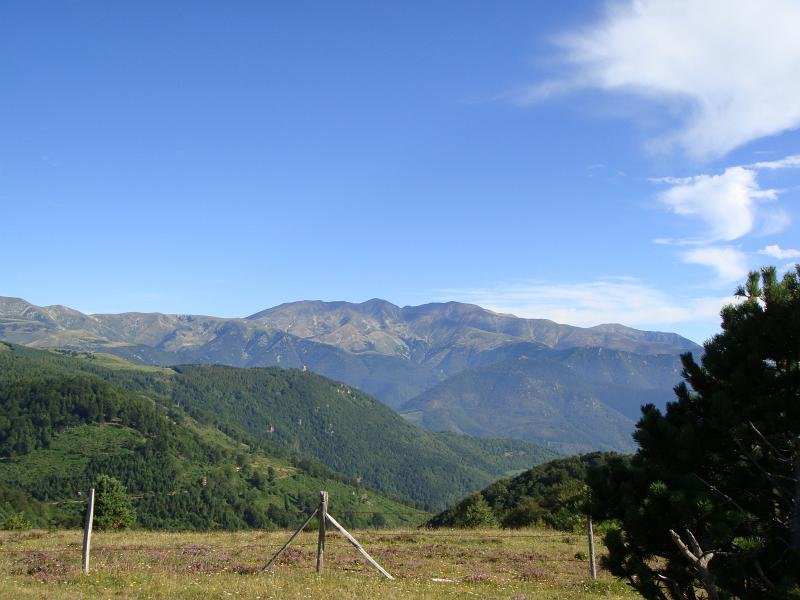 Ici, nous sommes en Espagne. Les piquets de la frontière. Là-bas, la tour du Mir. Here, we are in Spain. Stakes of the "frontier". Over there, the tower of Mir.