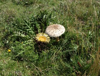 Un amour tragique, la coulemelle va bientôt mourir. A tragic love, the lepiota will die soon.