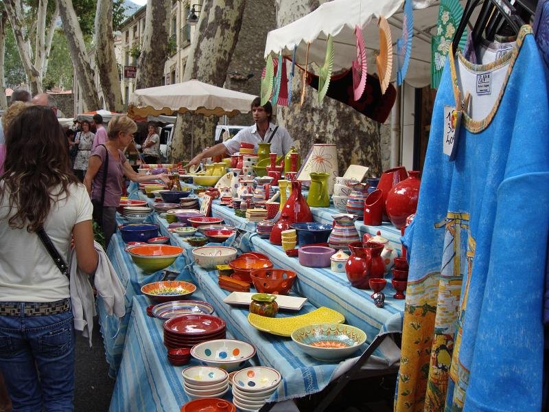 Le marché du samedi, à Céret. The market of Saturday, in CéretC'est combien pour ces gousses d'ail ? How much for these cloves of garlic?Et pour ces saladiers ? And for these salad bowls?Petit arrêt à Amélie-les-Bains. Short stop in Amélie-les-BainsJuste pour le pique-nique. Ici, on nous a offert des figues fraîches. Just for the picnic. Here, fresh figs were offered to us. 06 Collade des Roques Blanches08 Vers Puig Caga Llops