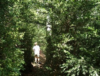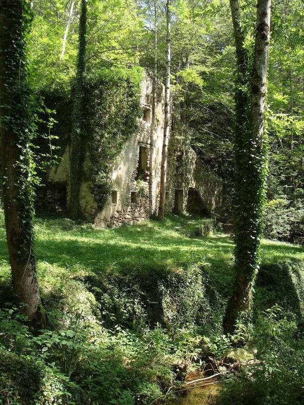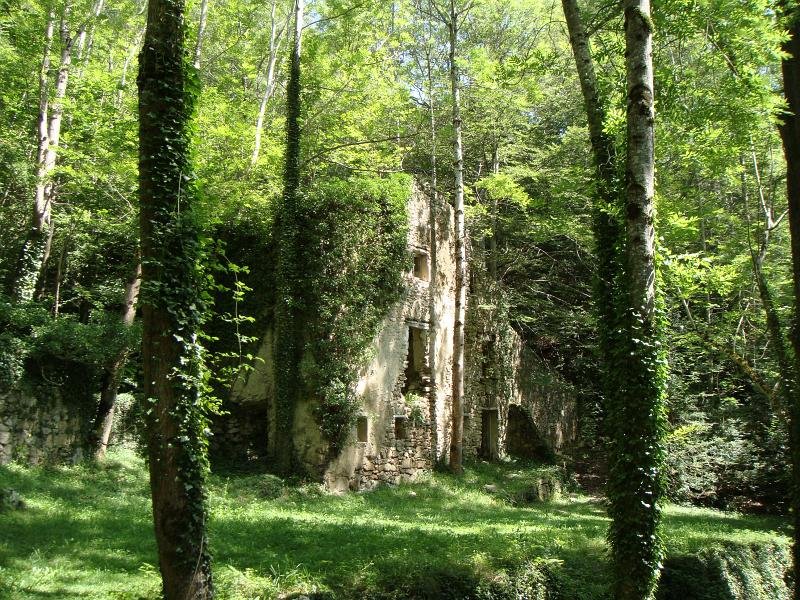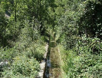 Le petit canal au-dessus du Tech. The small channel above the TechAvec un bon zoom, on peut voir les chèvres ! With a good zoom, one can see the goats!Du buis partout. Boxwood everywhere 07 Ceret, Amelie09 La Forge, Col Pregon
