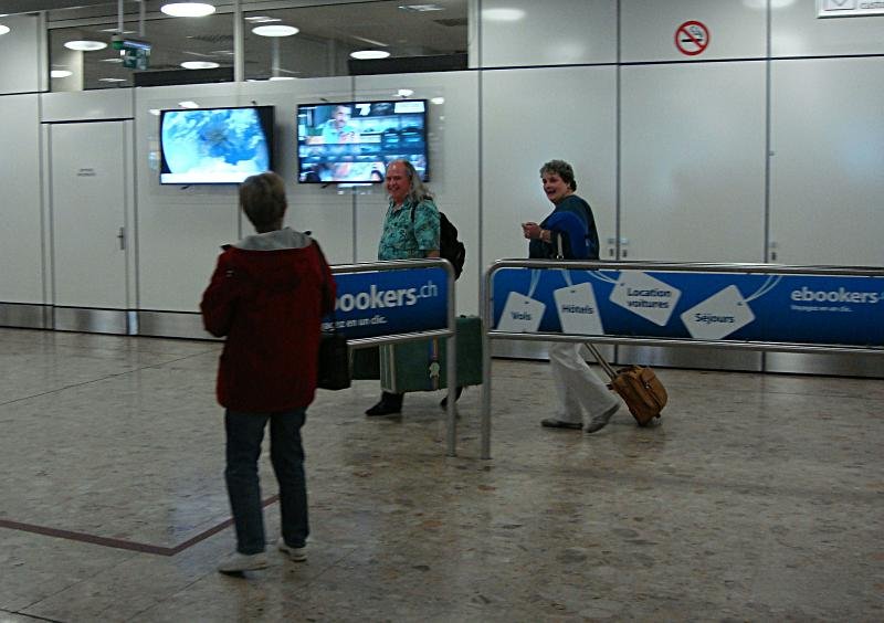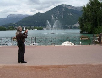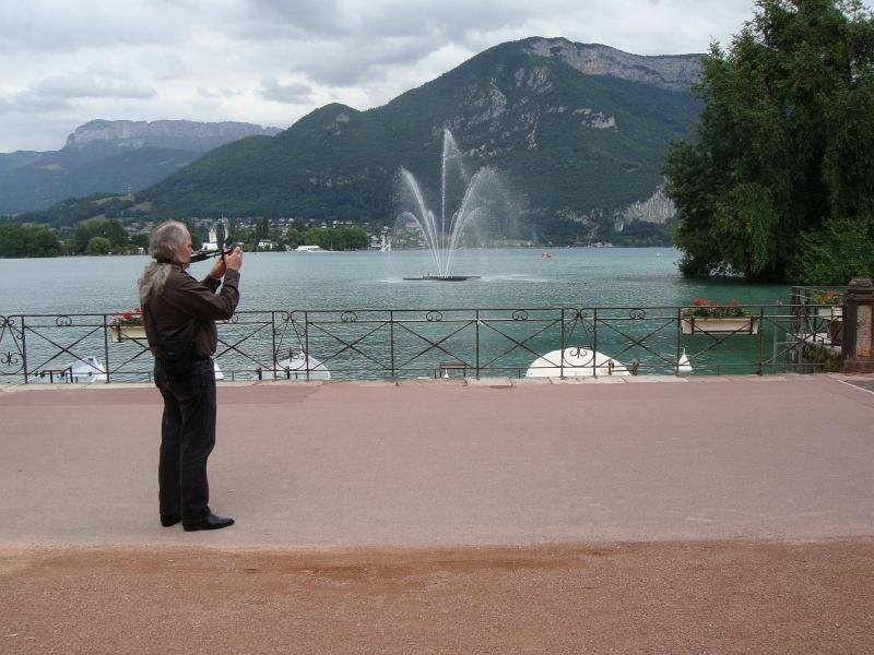 Geneva airportDe Washington DC, plus d'une heure de retard / Coming from Washington D.C., but more than one hour late.Enfin ! / At last!À la maison, à Groisy. Cerises du jardin, mais pas le miel / At home, in Groisy. Cherries from the garden, but not the honey.Photos vers le sud / Photos to the South ...... l'ouest /... ... the West...... le plus grand des bassins (il y en a trois) / ... the biggest pond (there are three)Annecy, the lake, from the "Jardin de l'Europe"Cathy aussi fait des photos ! / Cathy too takes pictures!Regarde ça ! / Look at that!