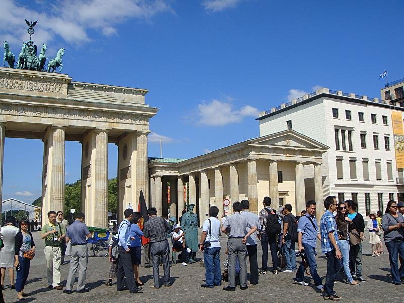 La Spree. Au loin la nouvelle coupole du ReichstagLa ChancellerieLe ReichstagC'était le championnat du monde de football féminin. Sages supportrices dans le métroAttraction touristique à la Porte de Brandeburg...... très prisée des JaponaisMorts au Mur AnniversairePostdam