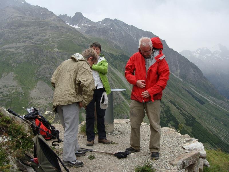 Papotages à Saint-Christophe, avant de monter à la ViergeAh, ça construit, ici !On retrouve le chemin classique ...... mais il y a de nouveaux panneaux indicateursNous allons vers la table d'orientationSurprise ! Blandine est montée par un autre chjeminDommage qu'il pleuve, maintenantJean-Paul, tout mouillé, préfère carrément changer de maillotMais rien n'arrête les valeureux montagnards ... 01_La_Bernardiere03_Temples-Ecrins