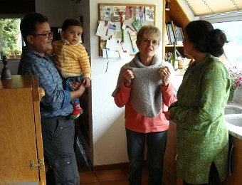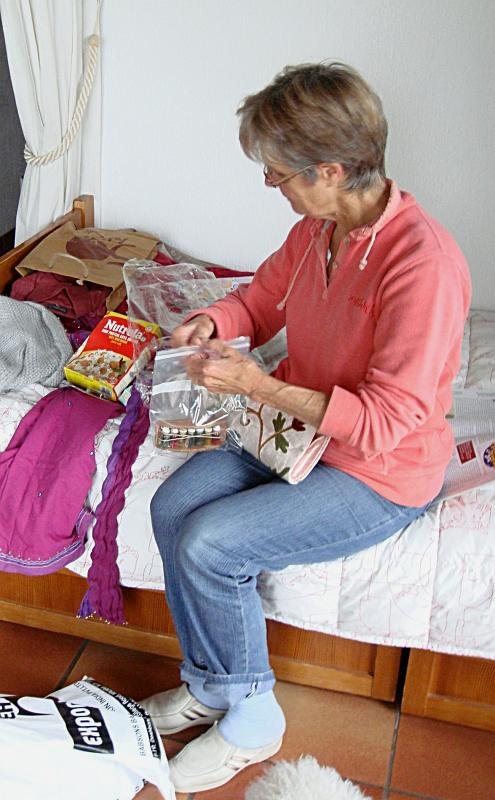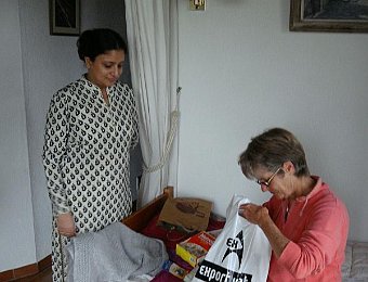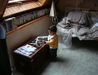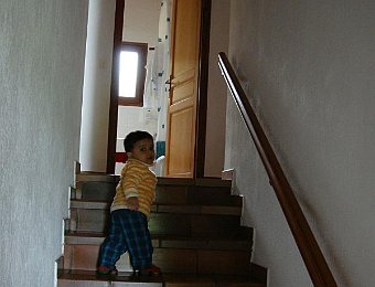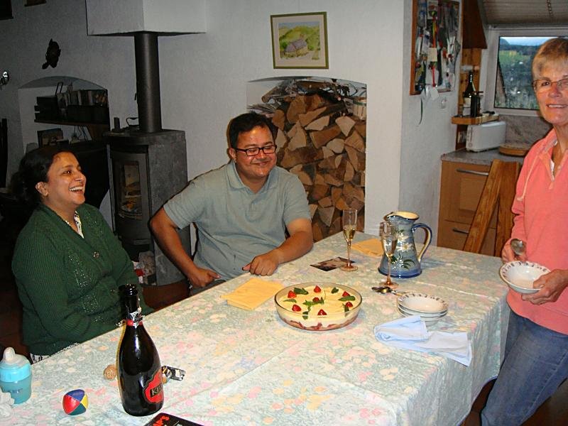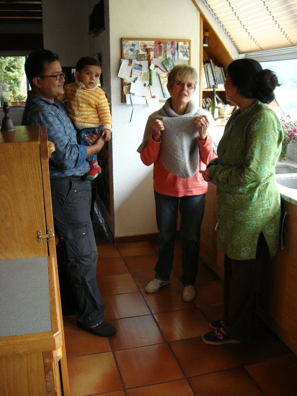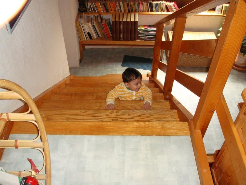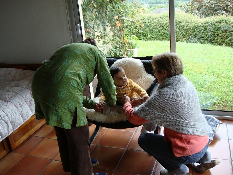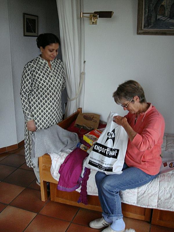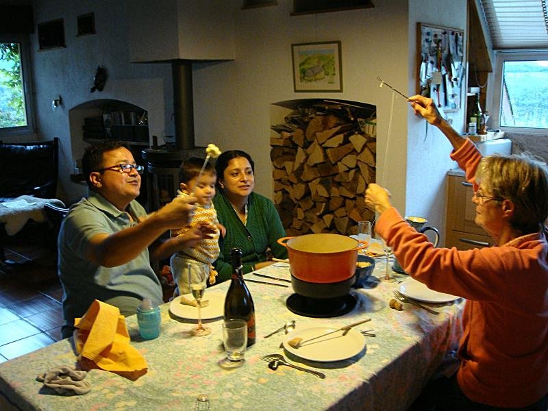 L'avion en provenance de Delhi via Dubaï est arrivé à Genève. Sunny, Brototi, Debanjan ... et leurs bagagesMartine les accueille à GroisyEt Brototi offre ses cadeaux ...... entre autres des huiles essentielles pour massage.La traditionnelle fondue savoyarde ...... et le tiramisu aux fraises, spécialité maison !Sunny enfile ses chaussures musicales ...... et part en exploration.Le premier grenier ...... encore des escaliers, vers le second grenier ...