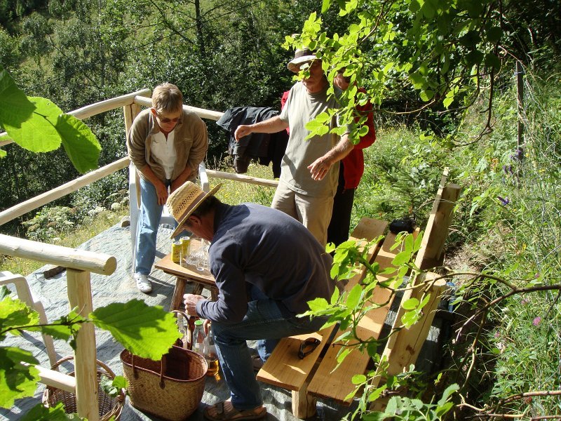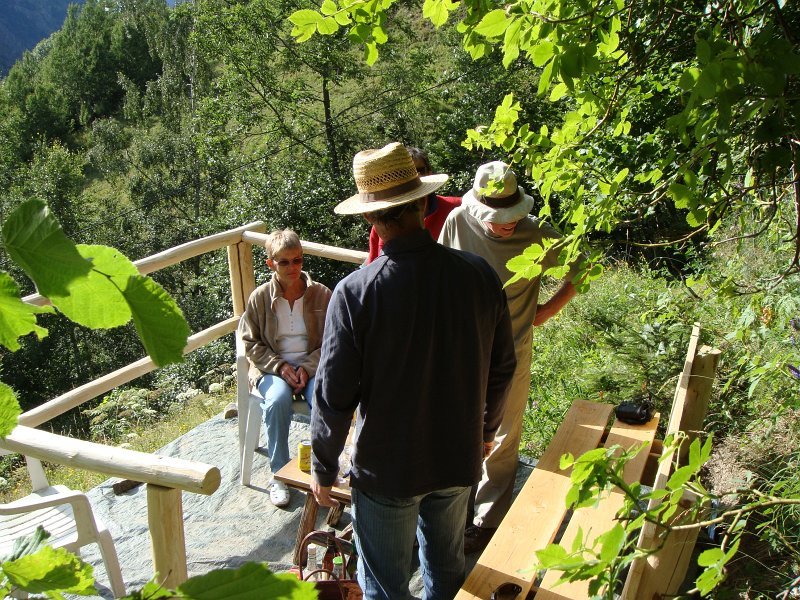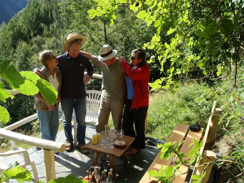 Quels sont les changements depuis l'année dernière ?Extérieurement, pas grand-chose, ...... à part un gros chat maladroit ...... mais intérieurement, cela devient luxueux !À noter entre autres la nouvelle porte au fond, mise en place par Jean-Paul.... où l'on a le soleil plus longtemps ...... et où l'on peut prendre tranquillement l'apéro.Déballons tout ça ...... mais n'oublions pas le photo de groupe ...... en prenant la pose. Comme ça ? ... InaugurationLe_Bec_de_Canard