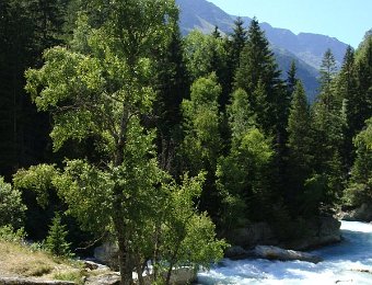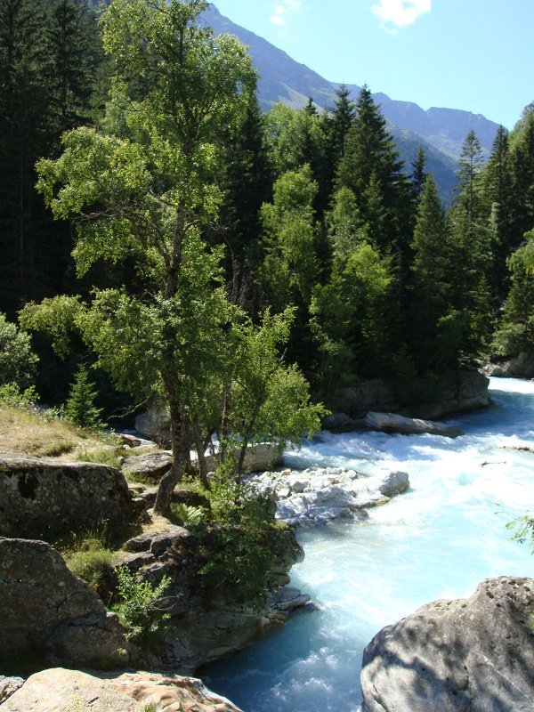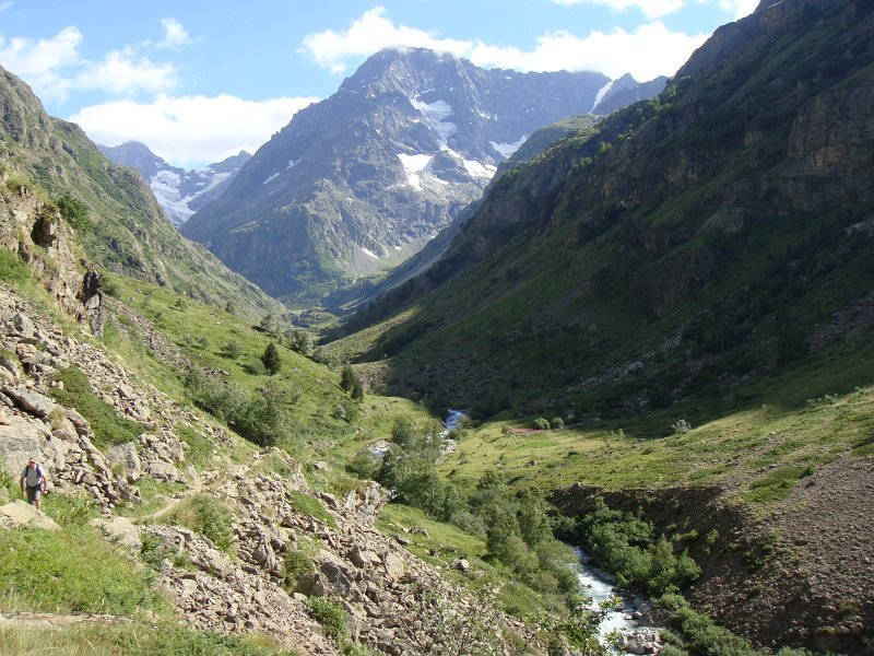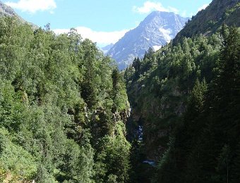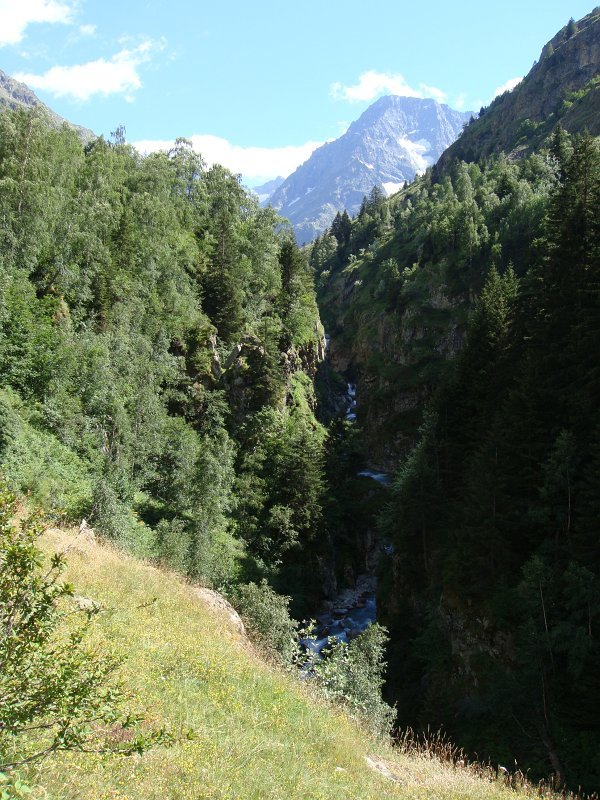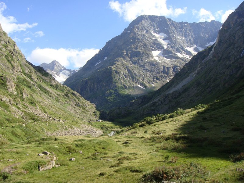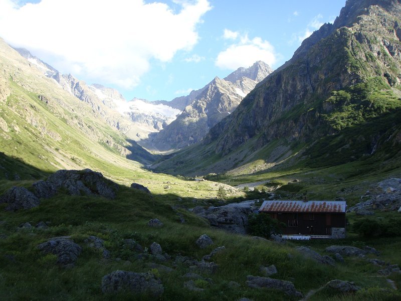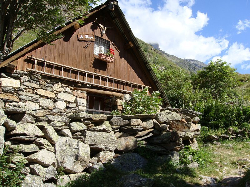 Départ tranquille vers 16h, pour le refuge de la LaveyLa classique photo en passant sur le Vénéon ...Et le tout aussi classique passage par Le Raja...... pour continuer vers le refuge ...Marche d'approche facile ...... avec quelques jolies digitales en bord de chemin ...... autre petit pont traditionnel, sur le Gabouléou ...La cascade est toujours là ...... on arrive bientôt, au fond, l'Aiguille d'Olan ...... et voici le refuge de la Lavey (1785 m), déjà à l'ombre ... La_Bernardiere