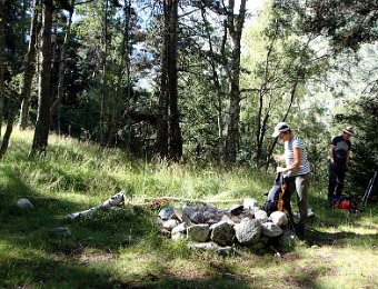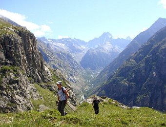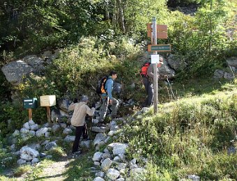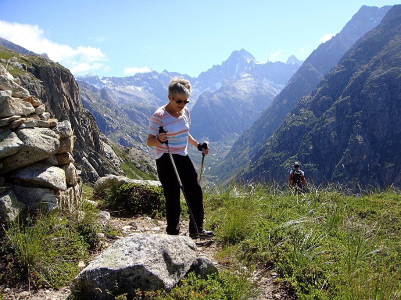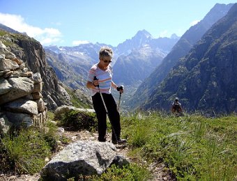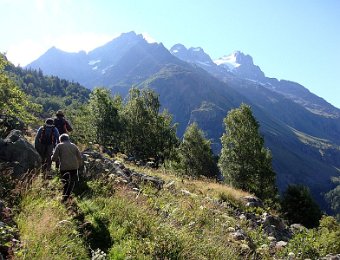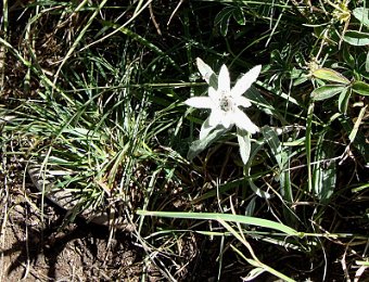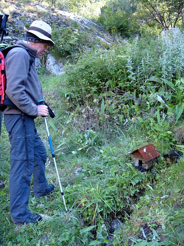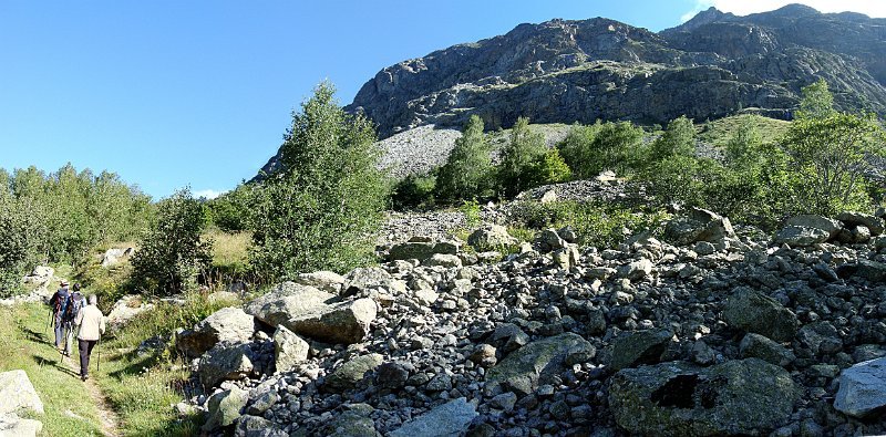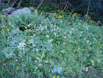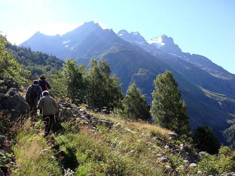 À la descente, nous remarquons mieux les fleurs, La grande astrance (Astrantia major) est toujours fidèle au poste, ...Au fond, les Fétoules, assez enneigées. Encore quelques minutes ...Les petits moulins estivaux sont bien en place et Jean-Paul a sa double protection crânienne.Au moins, il fait grand beau. Au fond, le Soreiller.La petite balade annuelle classique. Et même ici en version raccourcie, en partant du parking des Étages.... pour s'installer, ...... jusqu'à l'arrêt intermédiaire ...Panorama vers le sud. Fétoules, Rouies, au-dessus du rau de la Muande, ...Allez, on remonte un peu, ...... pourtant carrément sur le chemin ! 4_Alpe_du_Pin