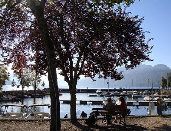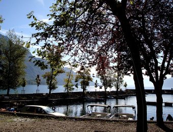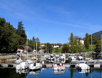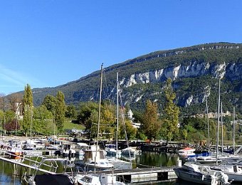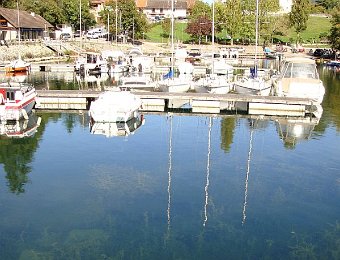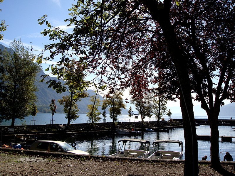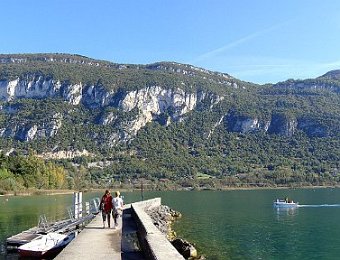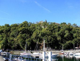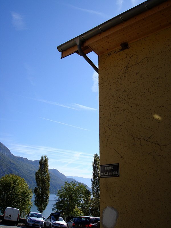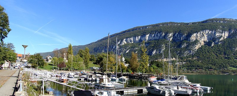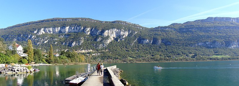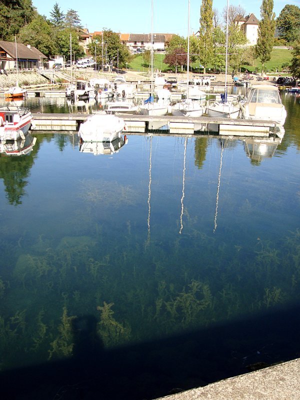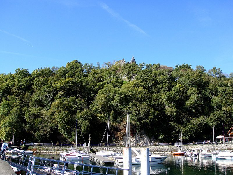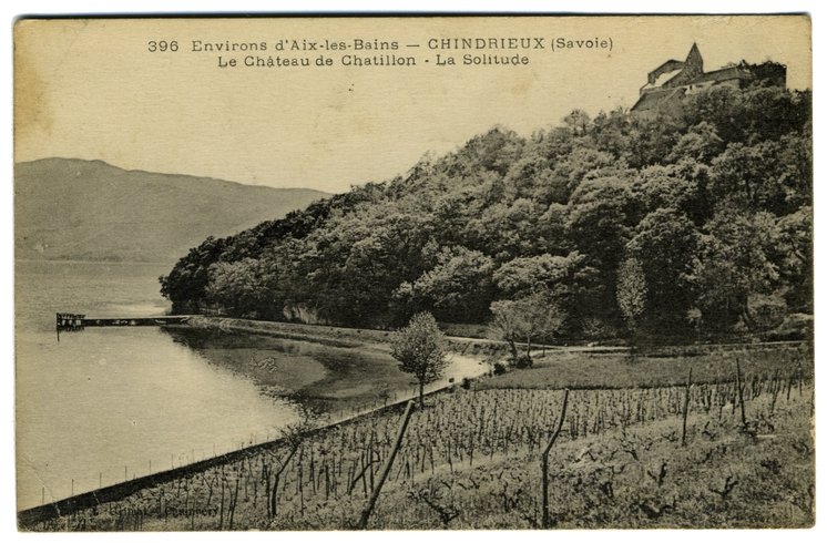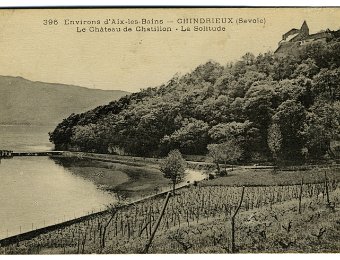 Devant le petit port de plaisance, ...... ces dames pique-niquent et papotent.Ensuite, une petite balade, avec vue sur la montagne de Cesssens.Et depuis la digue du port, on peut aussi mieux voir ...... le village de Châtillon, ...... et la transparence de l'eau.Et le château, forcément. Ah non, ça c'était en 1917 !Donc, de nos jours, le château du XIe siècle, remanié à plusieurs reprises, notamment au XVIe siècle et aux XVIIIe et XIXe siècles.Avec un peu de courage, on peut même emprûnter ce poétique chemin ...... pour monter vers une vielle ferme couverte en lauzes ...
