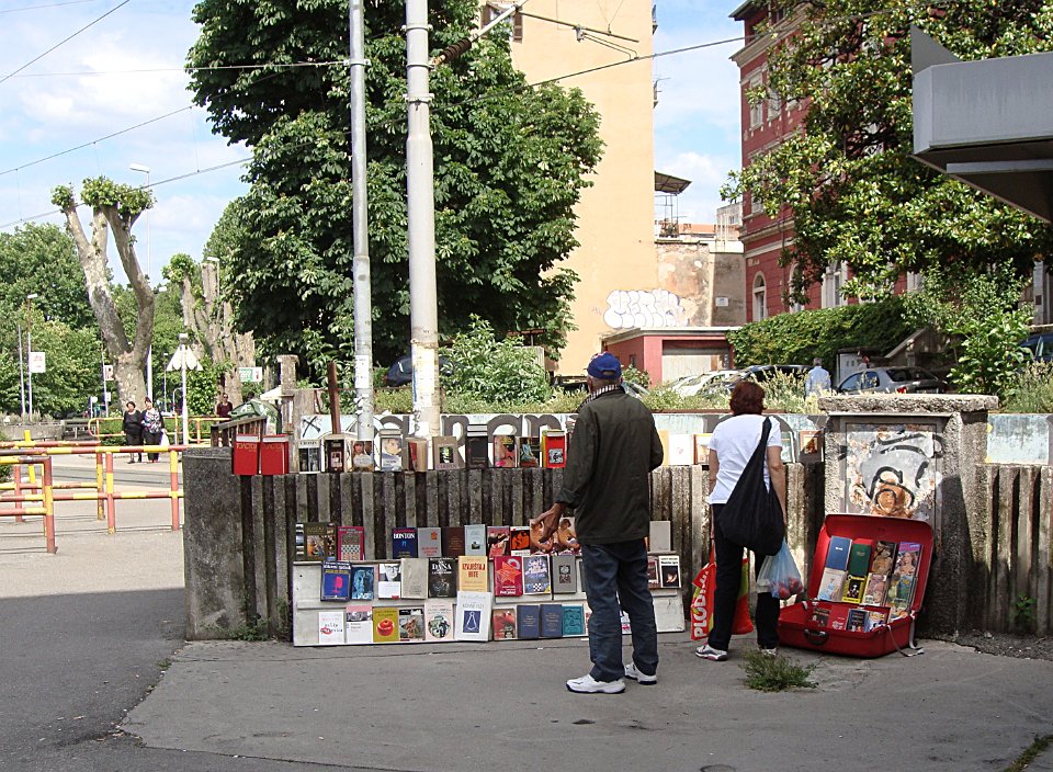 7 À l'extrémité ouest, vers la gare ferroviaire, cet homme tente de se faire quelques kunas, en vendant des livres à la sauvette.