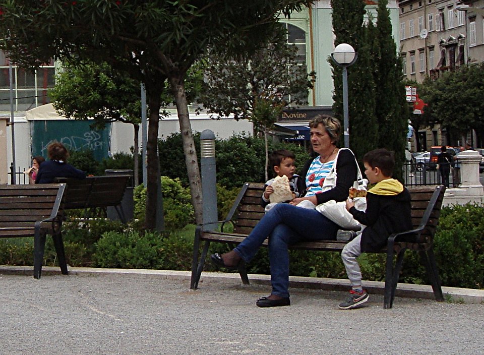 17 La grand-mère et les deux enfants qui étaient dans le même car que nous en venant de Zadar. À défaut de fraises, les crêpes, c'est bien aussi ...