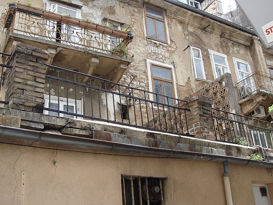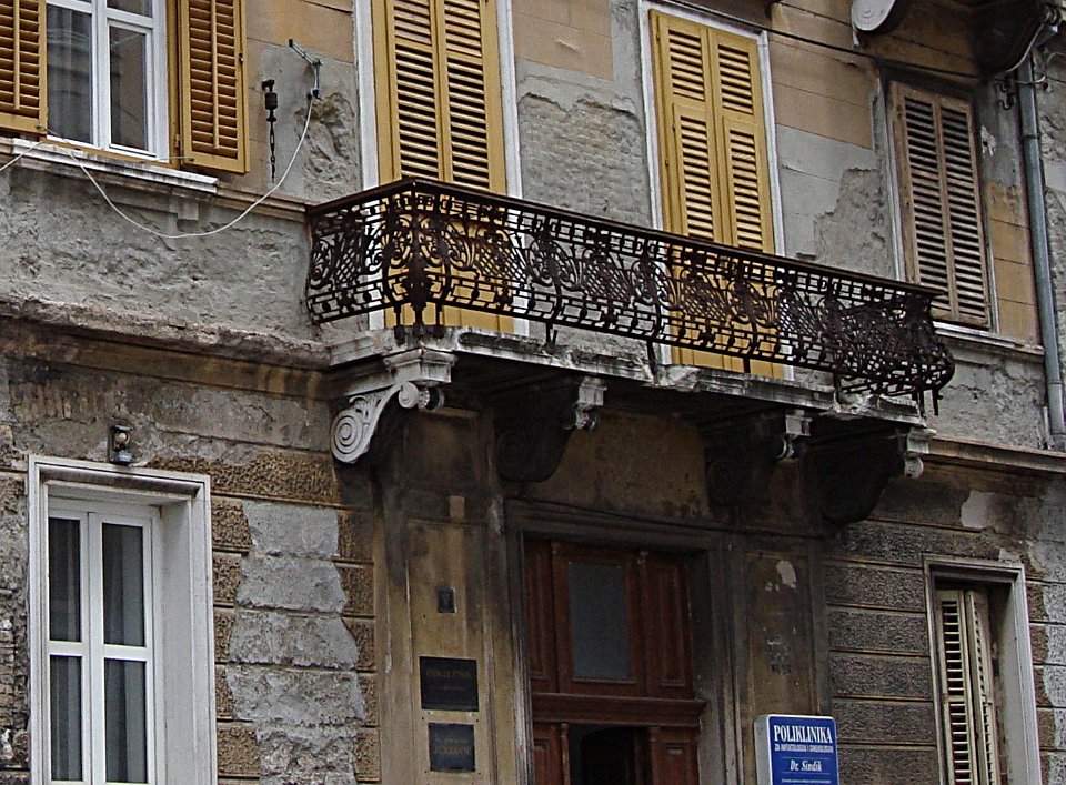 23 Un peu plus loin, un beau balcon en fer forgé pour une polyclinique par ailleurs bien décrépite.
