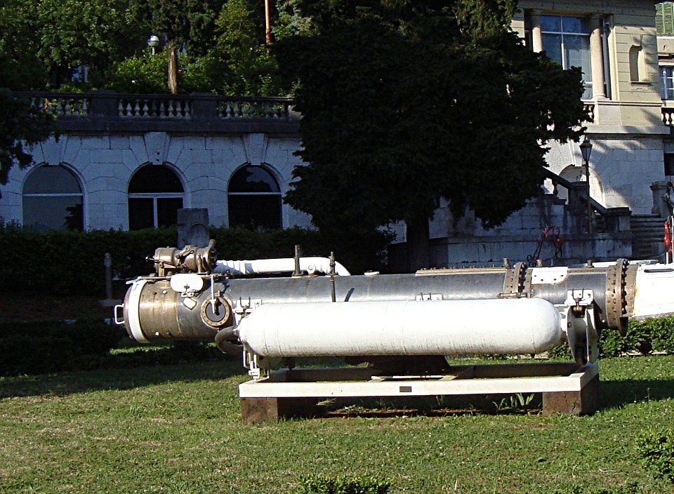 37 Dans le parc du Musée maritime, un engin bizarre. Exploration sous-marine ou torpille ?