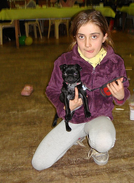 28 Surtout, de retour à la salle, avec ce petit chien. C'est un carlin (Mops en allemand). |