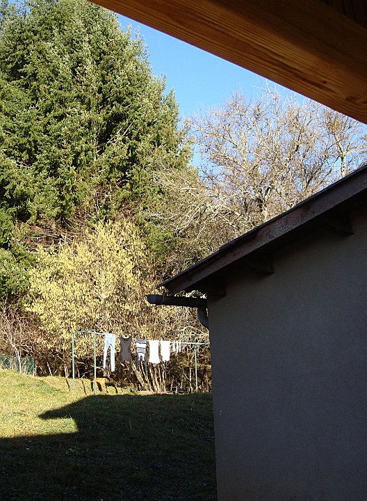 36 Nouvelle balade, pour s'étonner devant les noisetiers en chatons et le linge qui sèche au soleil. |