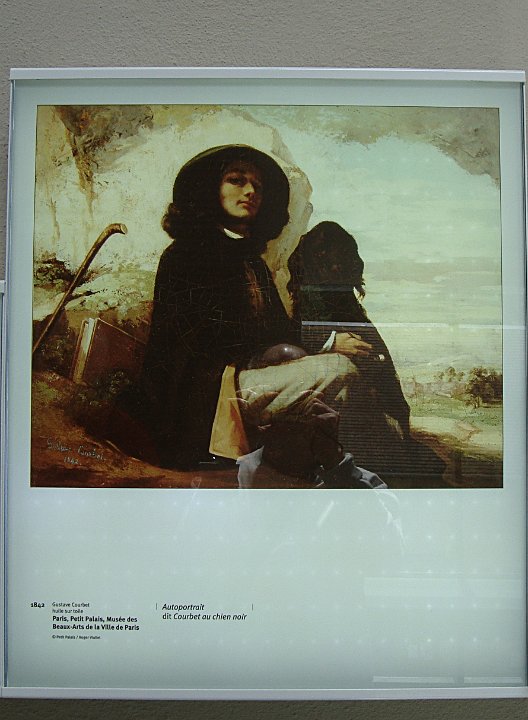 4 Plus loin, un auto-portrait dans sa jeunesse (Courbet au chien noir, 1844). Mais ce n'est qu'une reproduction. Curieusement, son tableau le plus célèbre, L'origine du monde (1866), n'est mentionné nulle part.
