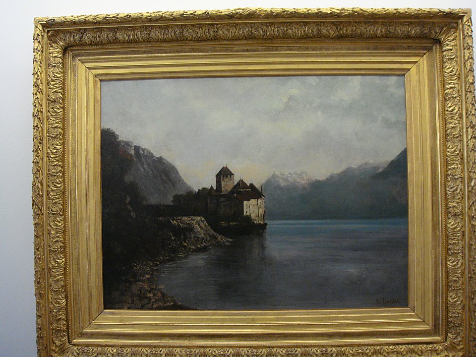 12 Le Château de Chillon (1874), sur le Léman, près de Montreux. Un grand classique peint plusieurs fois par Courbet et d'autres ( E. Lapierre, Pierre Œuvray, Léon Berthoud, etc.).