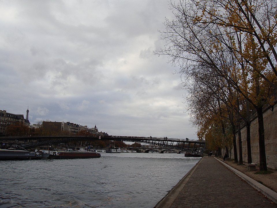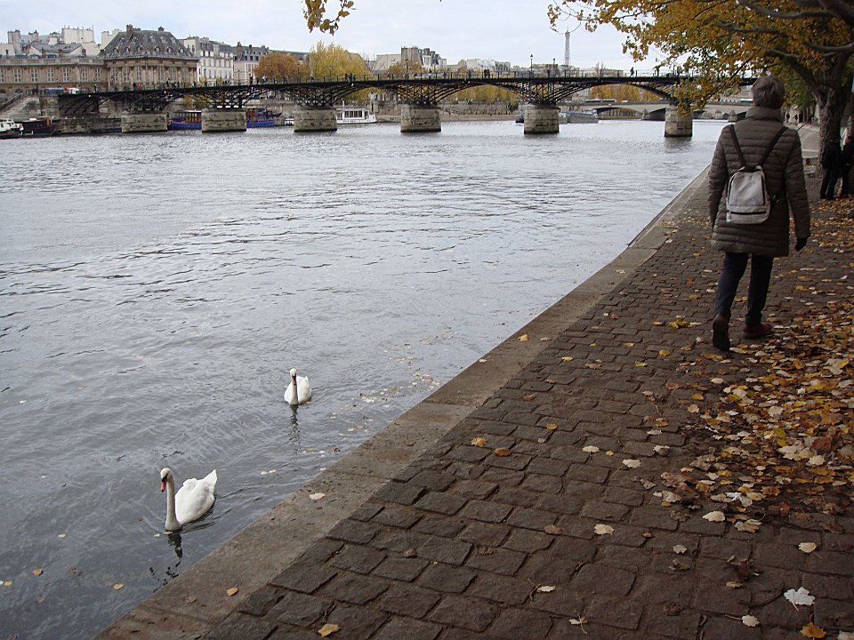12 Le pont des Arts et, derrière, le pont du Carrousel. Les cygnes guettent encore les passants ...