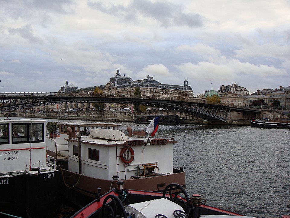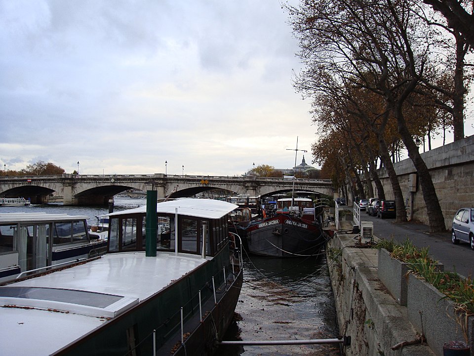11 Le bateau-mouche, devant le Pont des Arts, est bien vide.