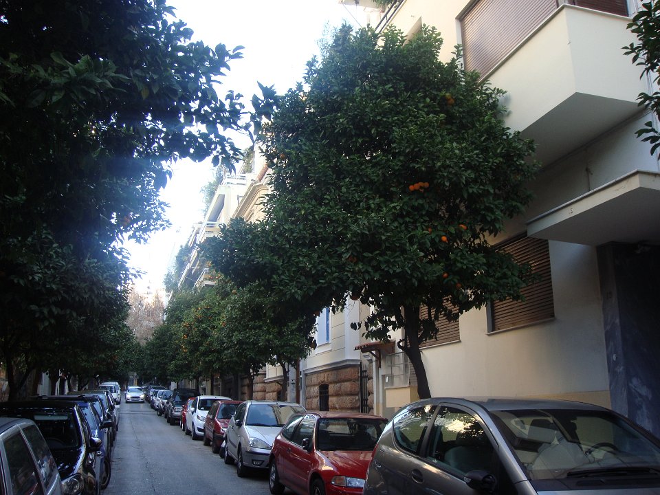 1 Depuis l'hôtel, rue Diakou, il ne faut que quelques minutes à pied pour aller à l'Acropole. Ici, l'arbre banal, c'est l'oranger.