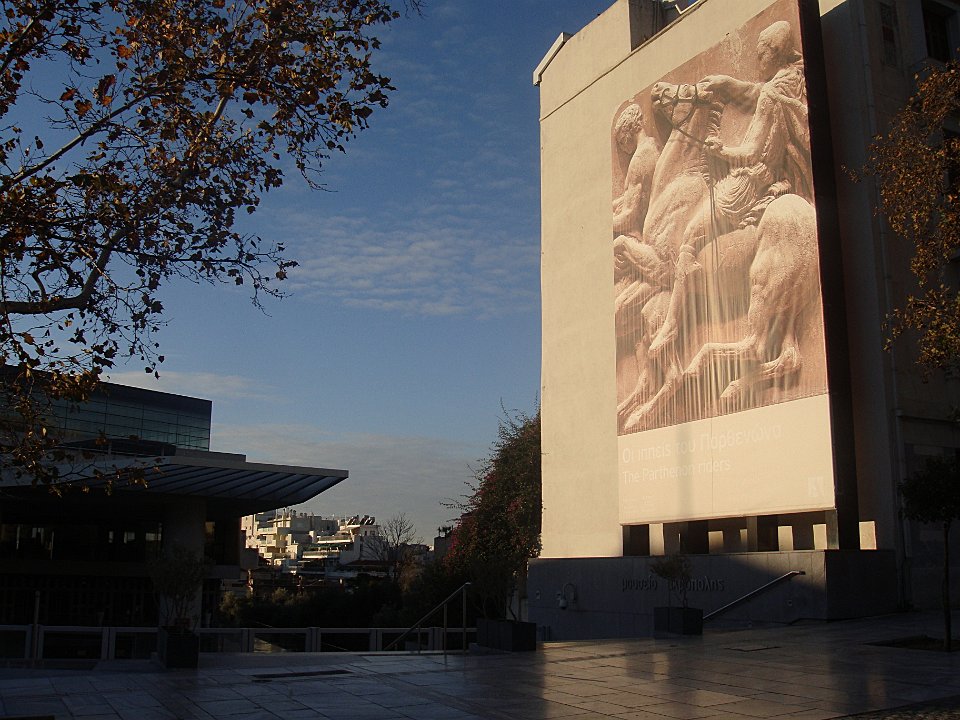 5 ... et le même un soir, pour la reproduction illuminée d'un fragment d'une des frises exposées à l'intérieur.