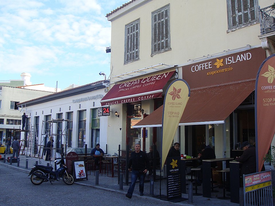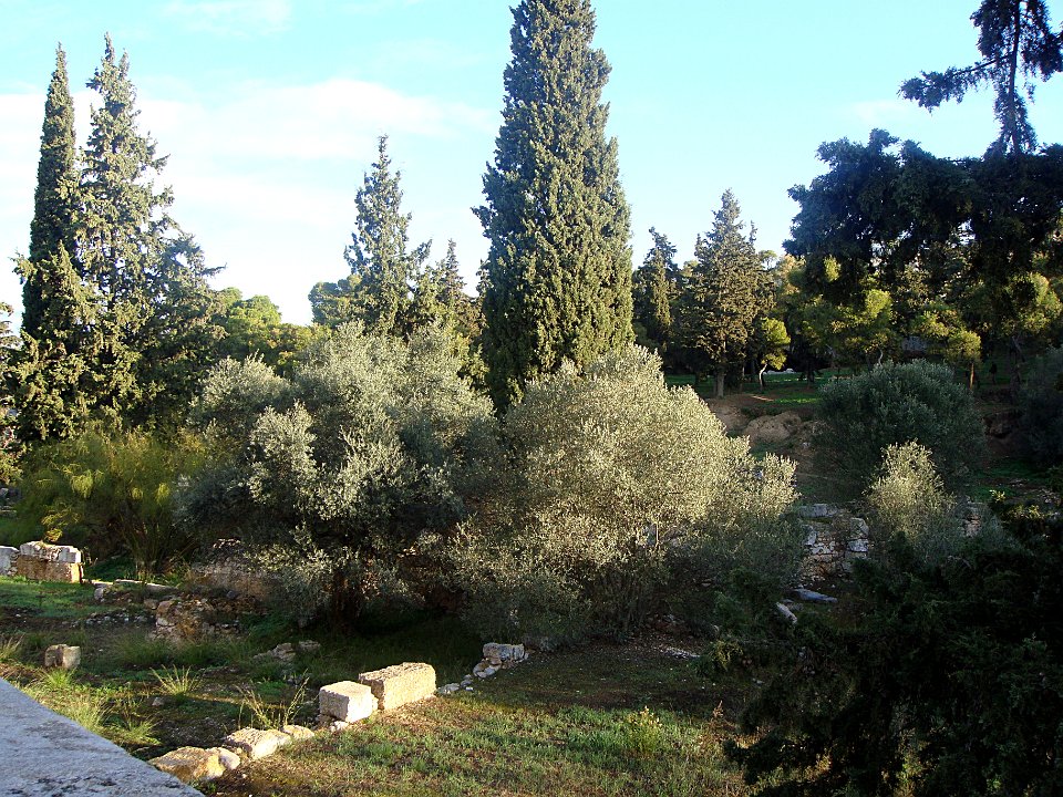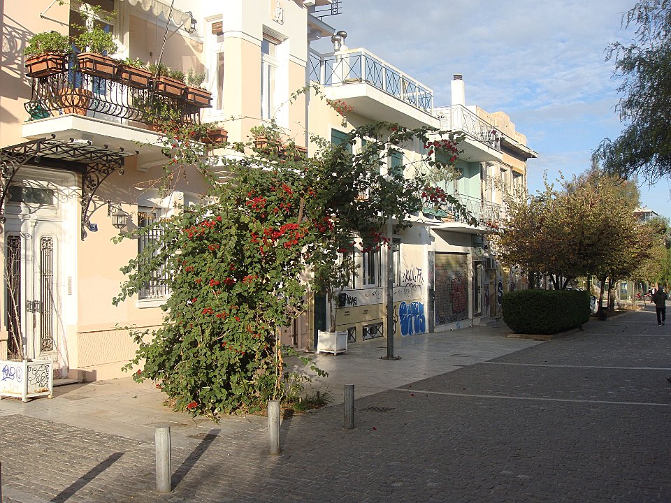 15 Comme les orangers, les oliviers aussi sont très communs. Ici dans la rue Adrianou, célèbre entre autres pour son cinéma en plein air, qui longe le parc,
