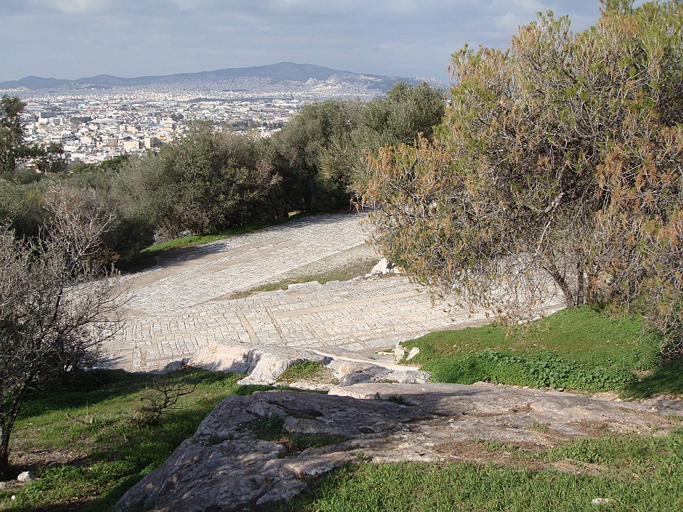 17 Redescente vers l'ancienne Agora par la Pnyx. Sous l'Antiquité, elle était le siège de l’Ecclésia, l’assemblée des citoyens, qui y votait les lois à main levée.