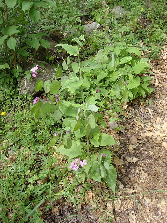 16 Sur ce sentier, pas mal de pieds de lunaire annuelle (Lunaria annua), plus connue sous les noms de Monnaie-du-pape, Médaille de Judas, Herbe aux écus. Les siliques plates sont les fruits, mais pas encore prêts à libérer leurs graines.