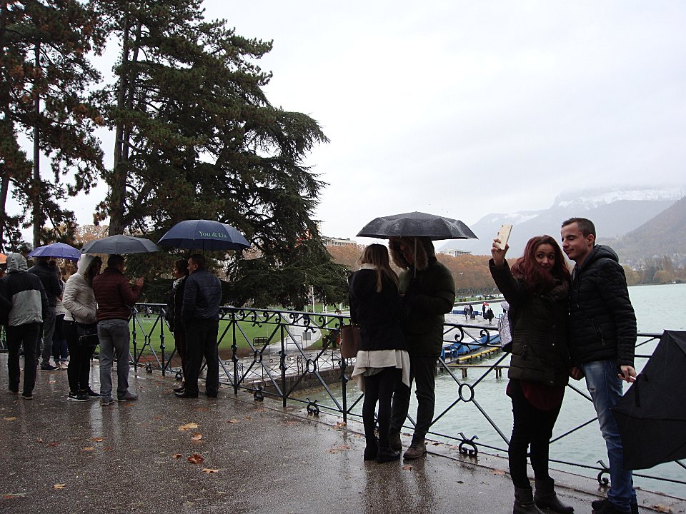 1 Il pleut un peu, mais cela ne décourage pas les touristes de prendre quelques photos ...