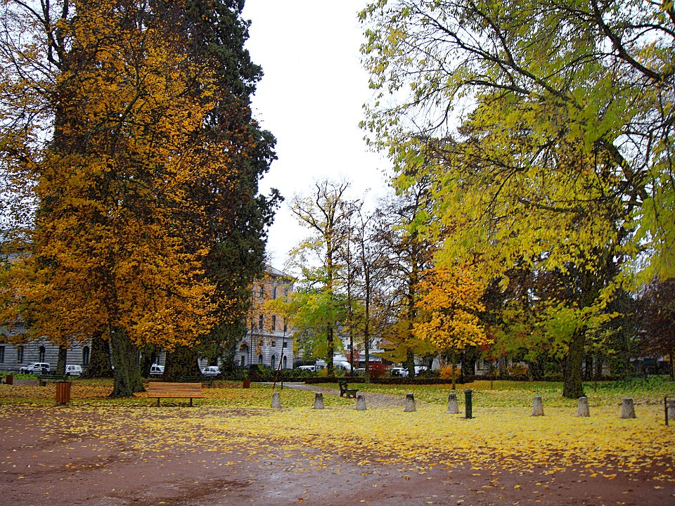 11 Derrière la mairie, les dernières feuilles d'automne jonchent le sol.