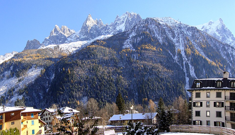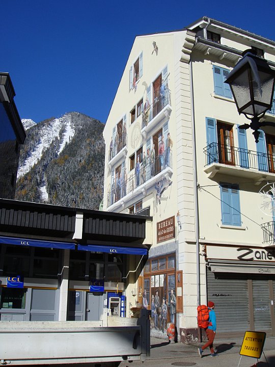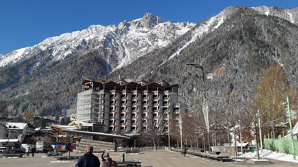 15 Justement, de l'autre côté de la vallée, voici le Brévent (2525 m), sommet sud du massif des Aiguilles Rouges. Par contre l'immeuble récent n'est pas une réussite !