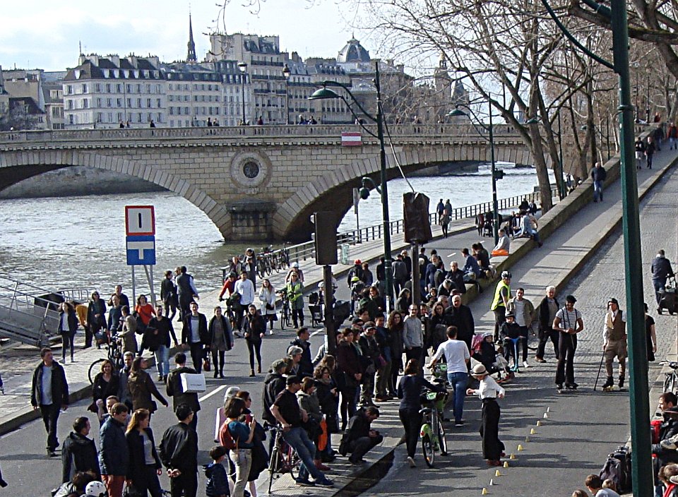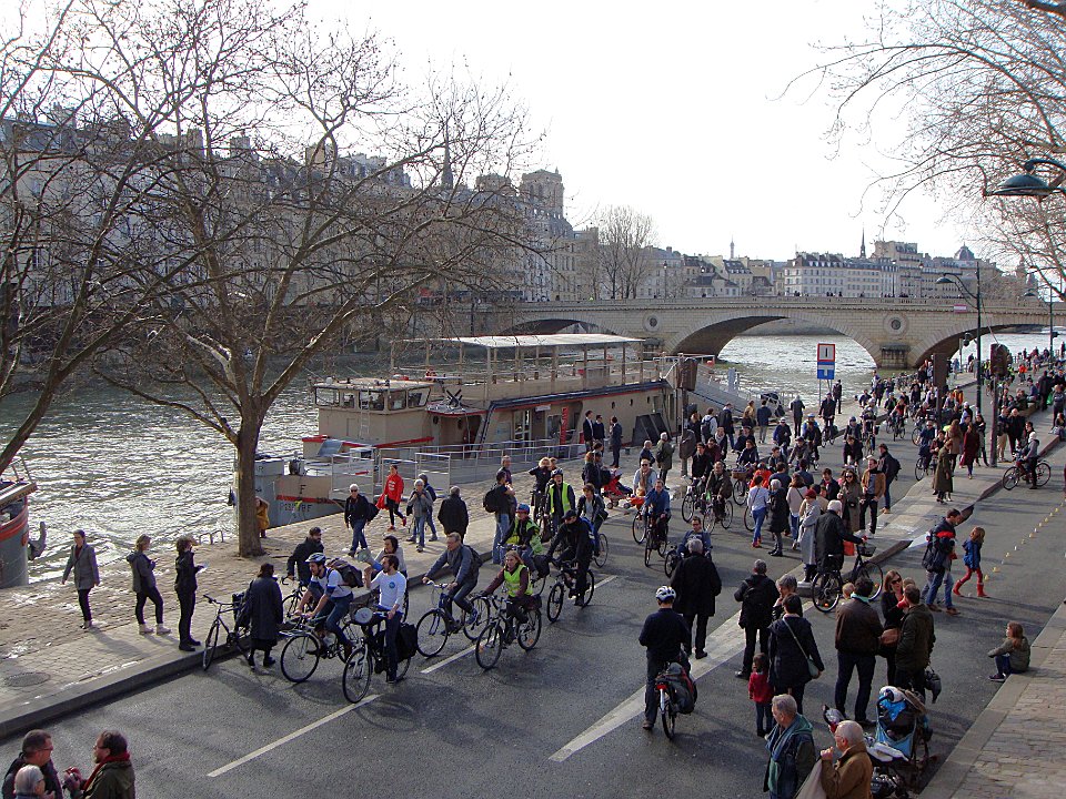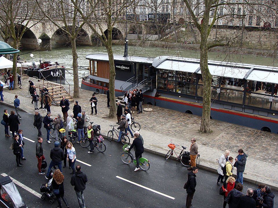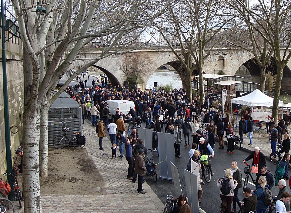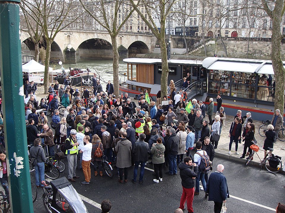 4 Aujourd'hui 10 mars, une manifestation est prévue pour soutenir le projet de suppression des voitures sur les voies sur berges. Nous y allons, en passant par le port de l'Arsenal ...
