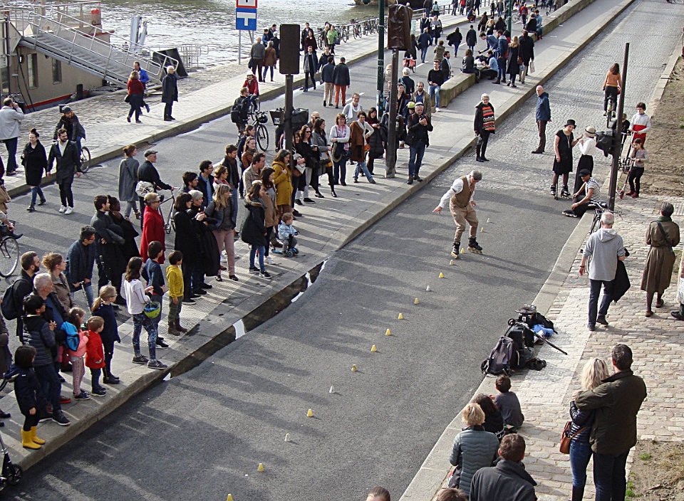 28 Profitant de la manif, des acrobates en rollers s'installent ...
